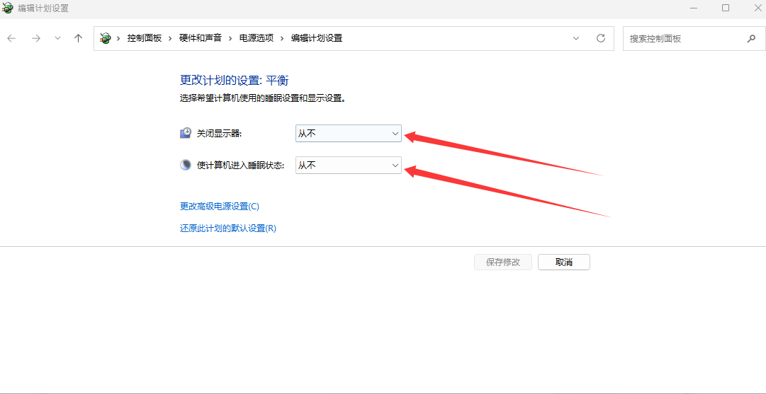 1:会把关闭显示器选择从不 ,使计算机进入睡眠状态选从不