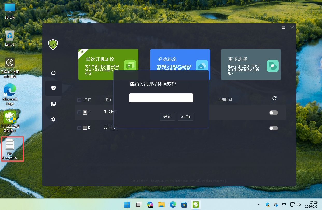 3:在桌面默认会生成一个密码记录,天天卫士重启还原默认密码统一为 666666 如果你修改过还原密码,可以直接填写默认的即可